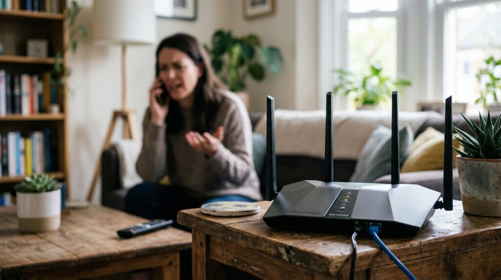 Solução: Desligue da tomada por 30 segundos — não apenas aperte o botão de reset. Faça isso uma vez por mês como manutenção básica.